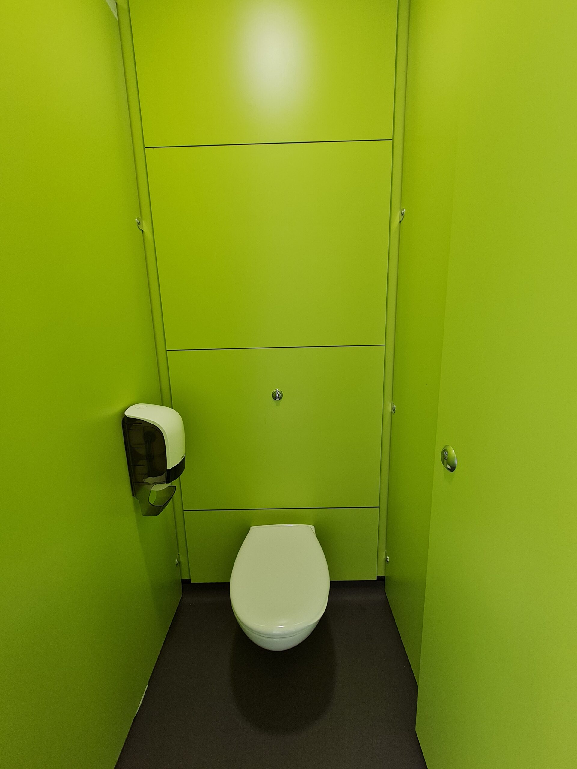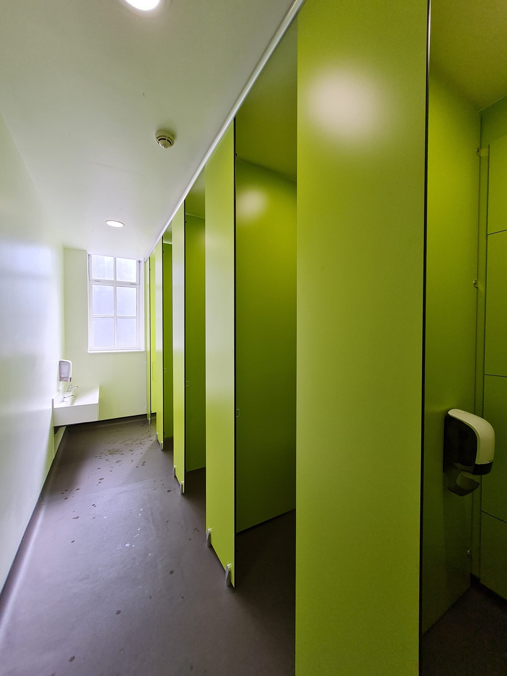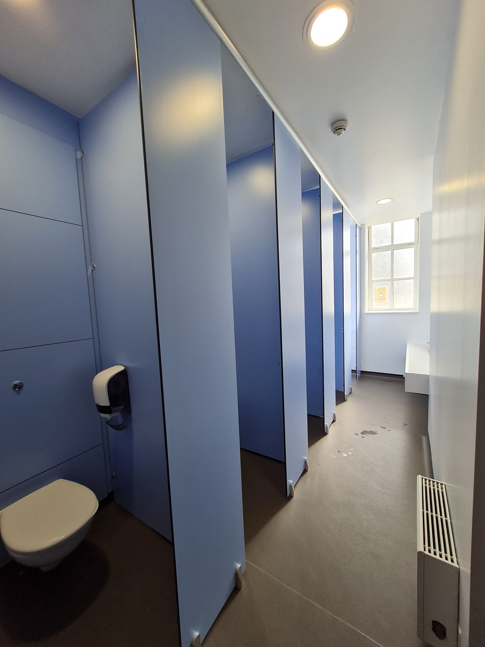 Full strip out, vinyl flooring, decoration of walls, new lighting and decoration of ceiling, solid surface washtroughs, solid grade laminate cubicles and WC duct panels, sensor taps and new hand dryers.