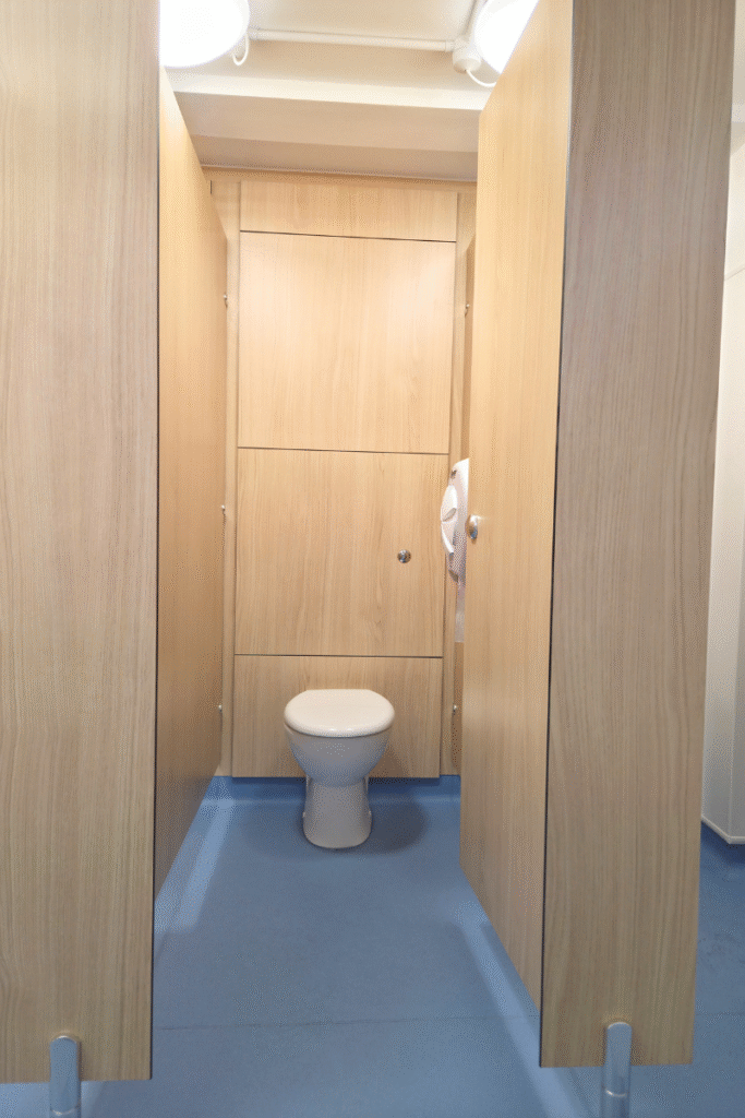 The new cubicles and duct panels were manufactured from SGL, a fully waterproof material that will not swell, warp or degrade—even with unavoidable splashes in a primary school washroom.