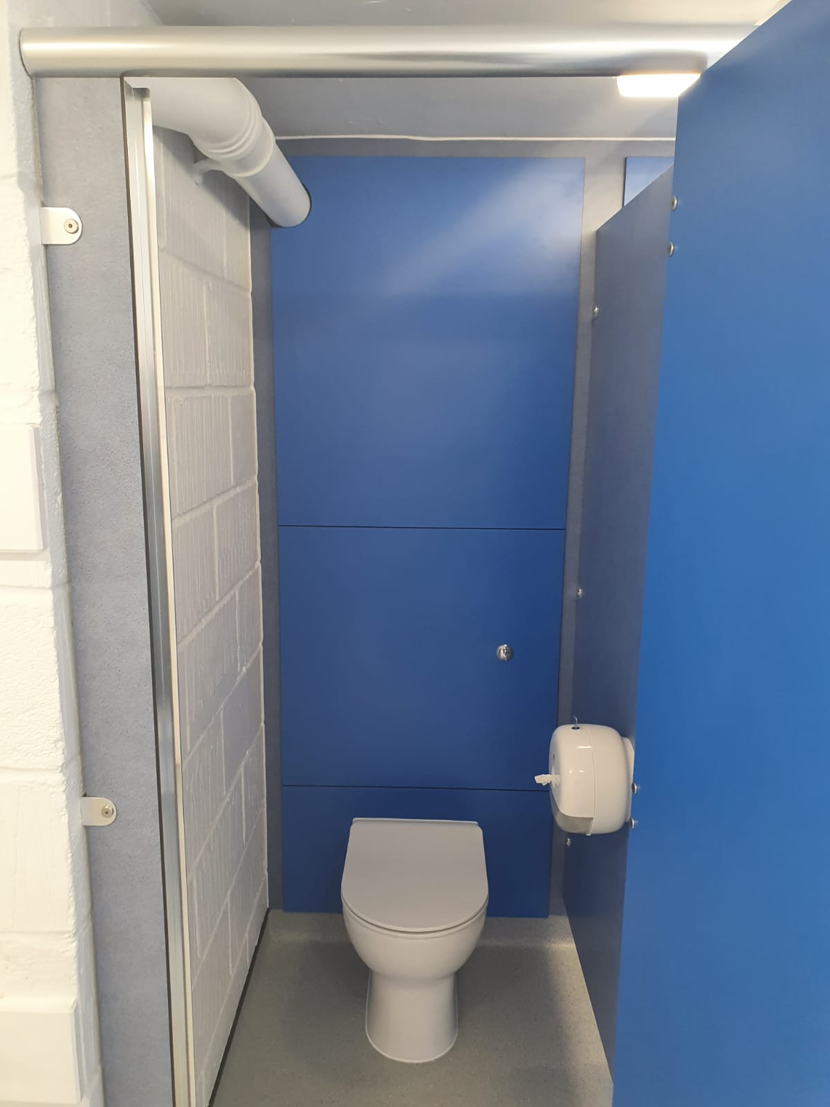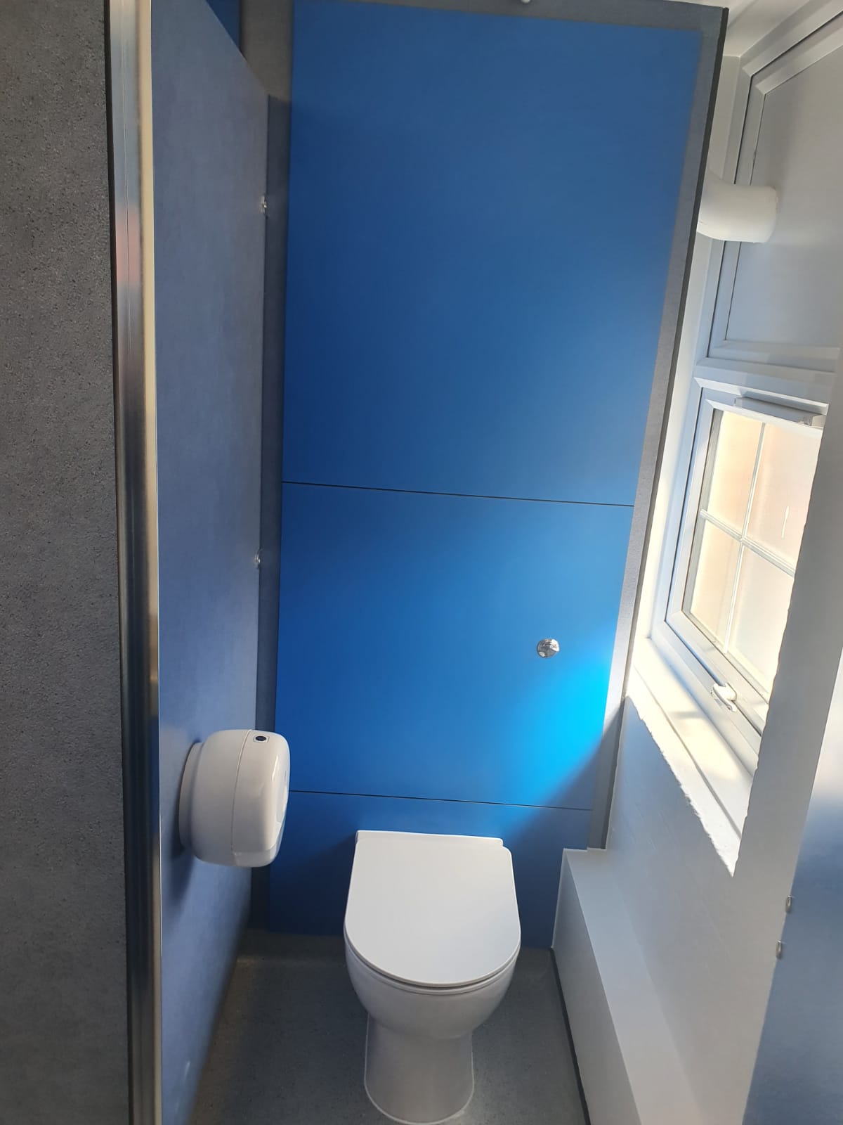 The project was a complete refurbishment to the pupil Washroom areas and included back to wall WC pans, Stainless Steel washtroughs, solid grade laminate cubicles from our Velocity range as well as vinyl safety flooring and decoration throughout the rooms.