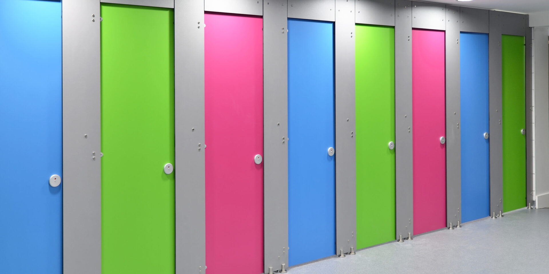 Choosing the right fixtures and materials for the school washroom can make a notable difference. When it comes to cubicle doors, Solid Grade Laminate (SGL) and High-Pressure Laminate (HPL) are durable materials ideal for preventing vandalism, which is pervasive in many schools. SGL is water- and liquid-proof and is suited for demanding environments. HPL is also water-resistant and is best suited for dry areas with intense use.
